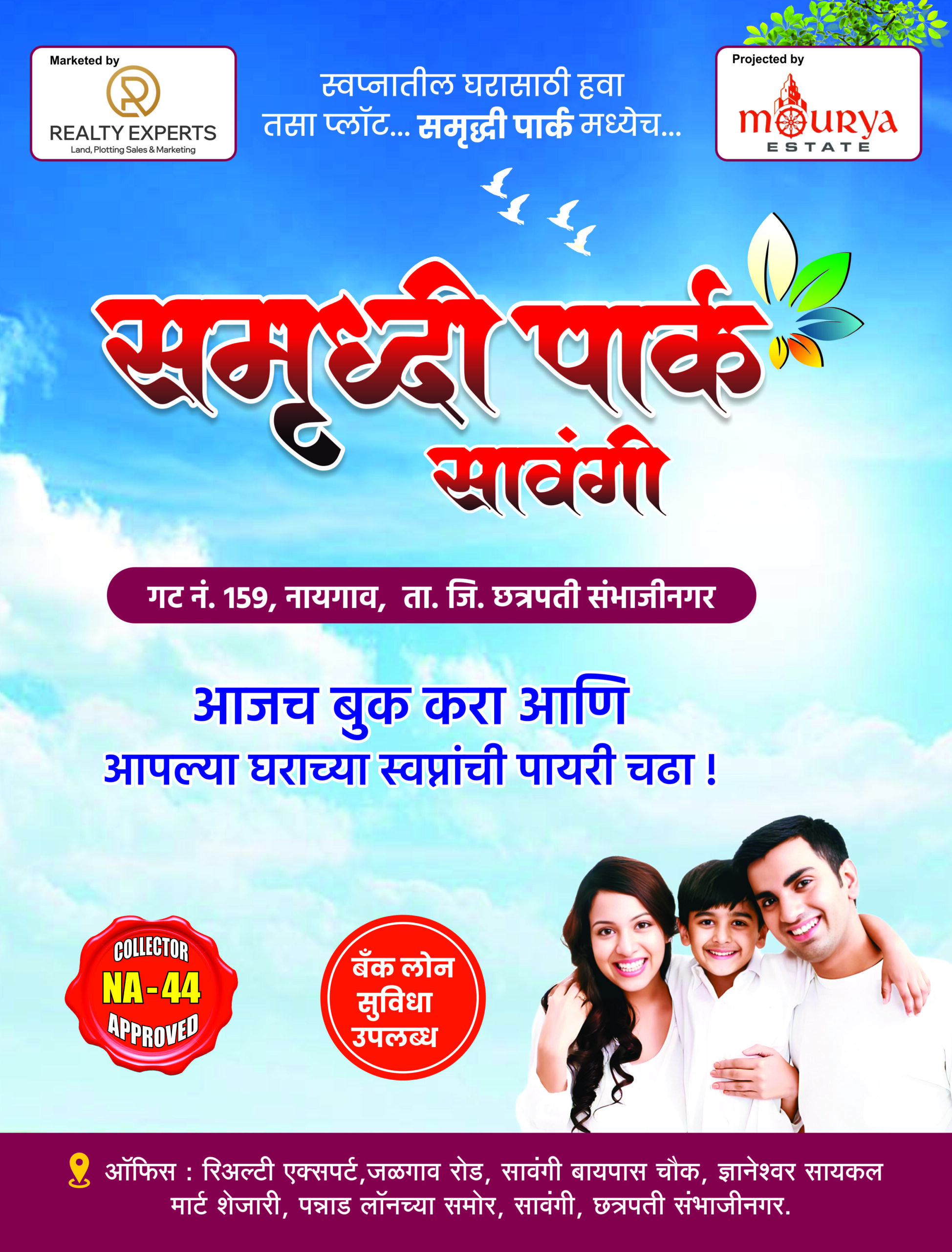 Located in the fast-growing area of Savangi, Chhatrapati Sambhajinagar, Samruddhi Park is thoughtfully designed to bring together modern amenities, convenience, and a serene lifestyle — the perfect combination for your dream home or a secure investment.