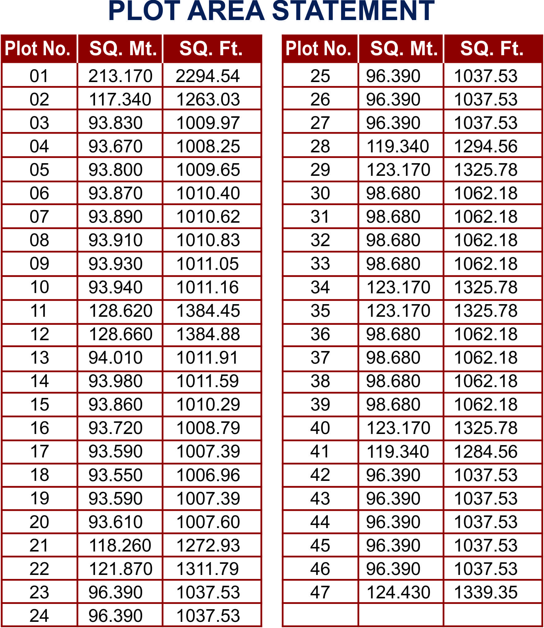 • Plot Sizes: From 1000 sq.ft. to 2300 sq.ft. approx.